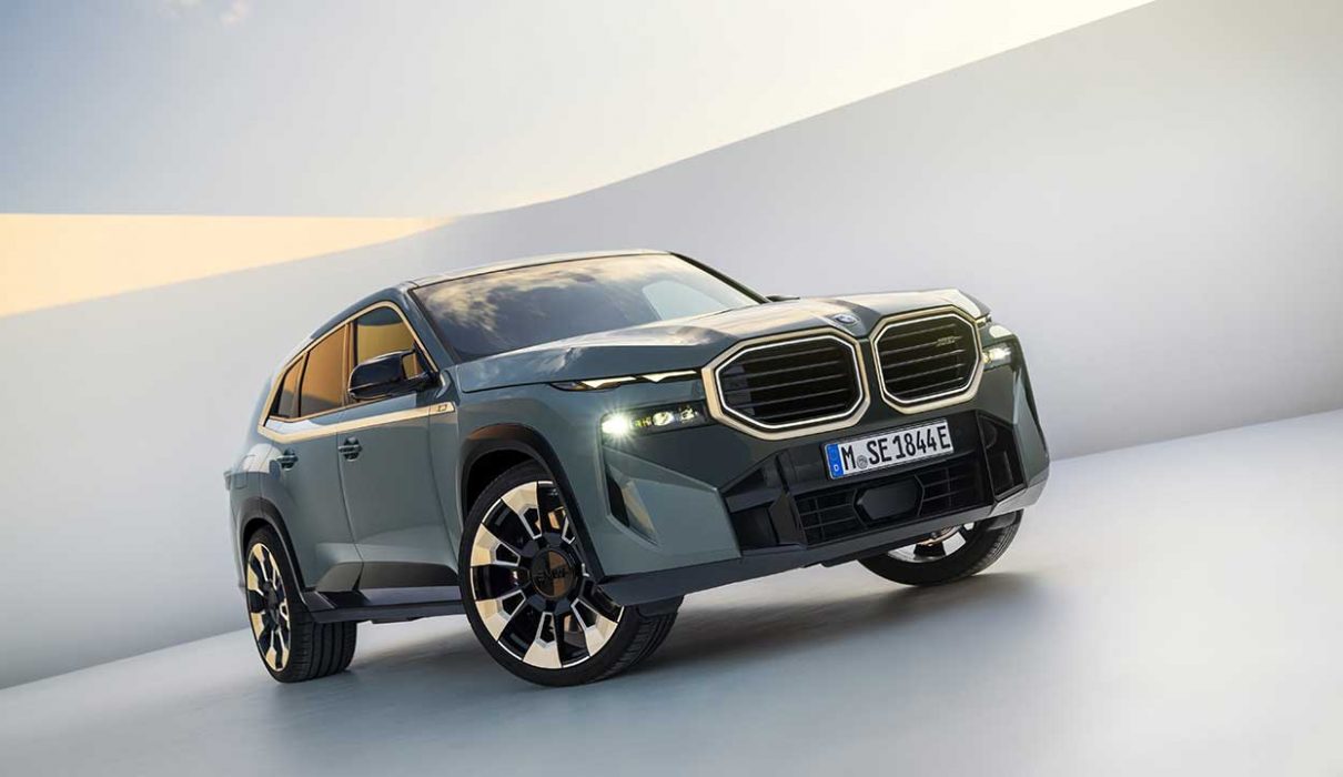 BMW’nin lüks segmentteki modellerinde kullanılan iki ayrı üniteye ayrılmış farları ve aydınlatmalı dev BMW böbrek ızgaraları BMW XM’in lüks ve çarpıcı duruşunu destekliyor.
